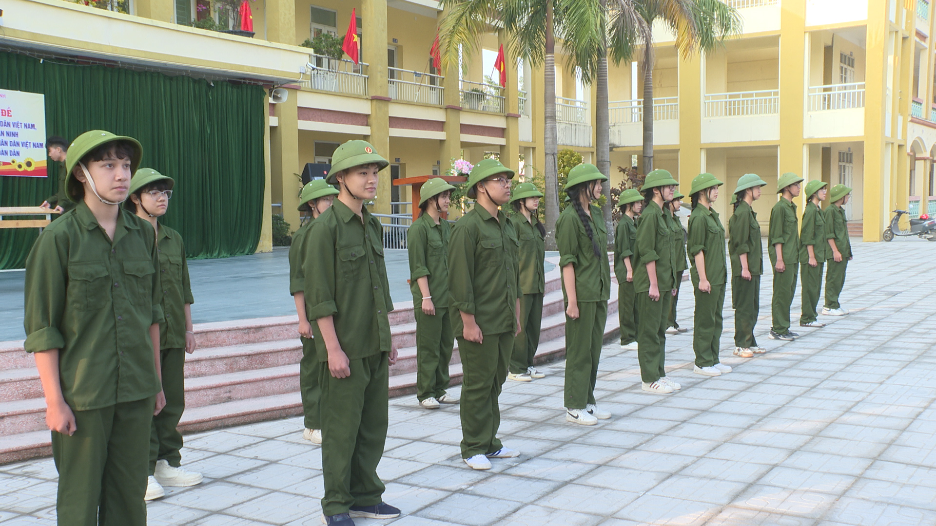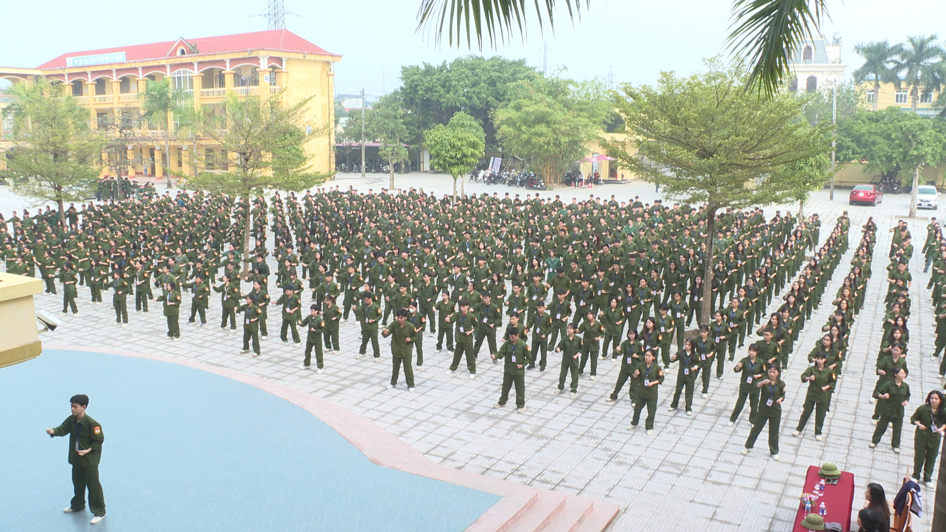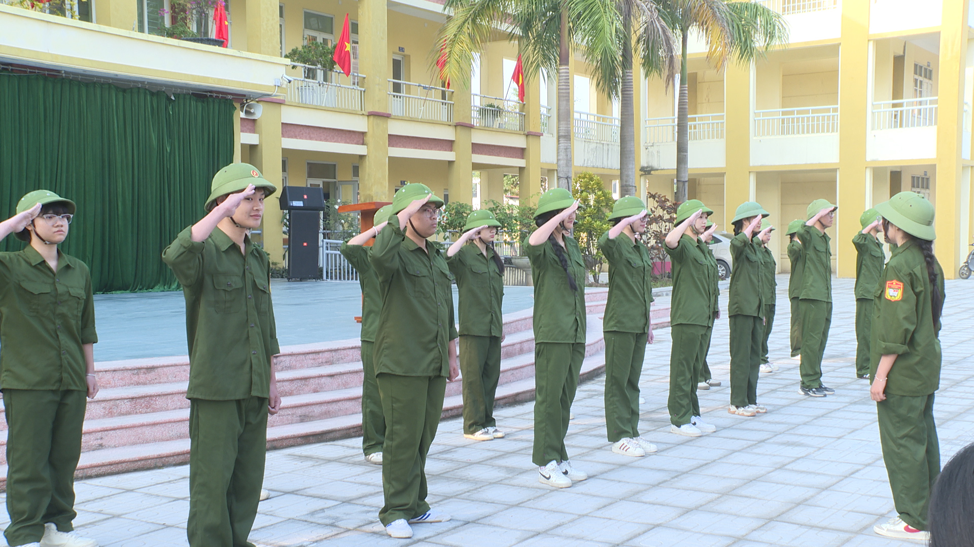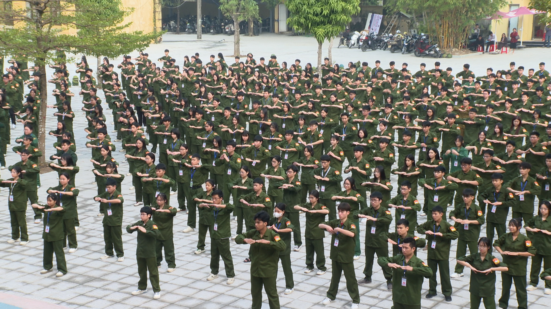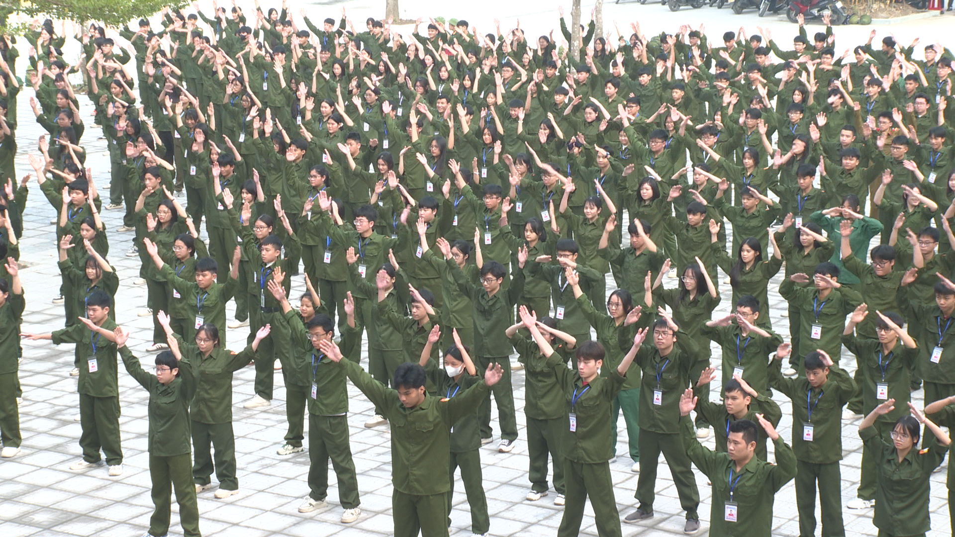 Cũng tại buổi sinh hoạt các em học sinh nhà trường cũng đã được tham gia hội thao giáo dục quốc phòng, an ninh. Trong đó các em học sinh khối 10 tham gia nội dung điều lệnh đội ngũ trung đội; học sinh khối 11 tham gia nội dung tháo, lắp súng tiểu liên AK ban ngày. Các nội dung được tổ chức thi theo đúng chương trình môn học GDQP-AN. Hội thao không chỉ là cuộc thi về kỹ năng quân sự mà còn là dịp để các em học sinh rèn luyện ý chí, kỷ luật, tinh thần trách nhiệm và lòng yêu nước của mình.