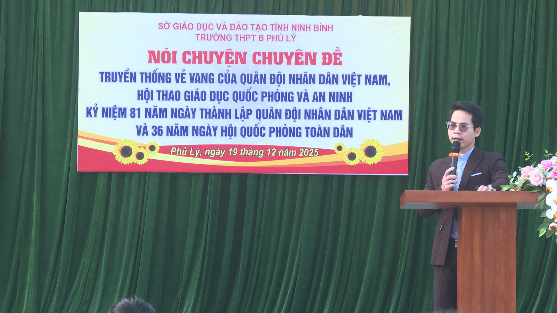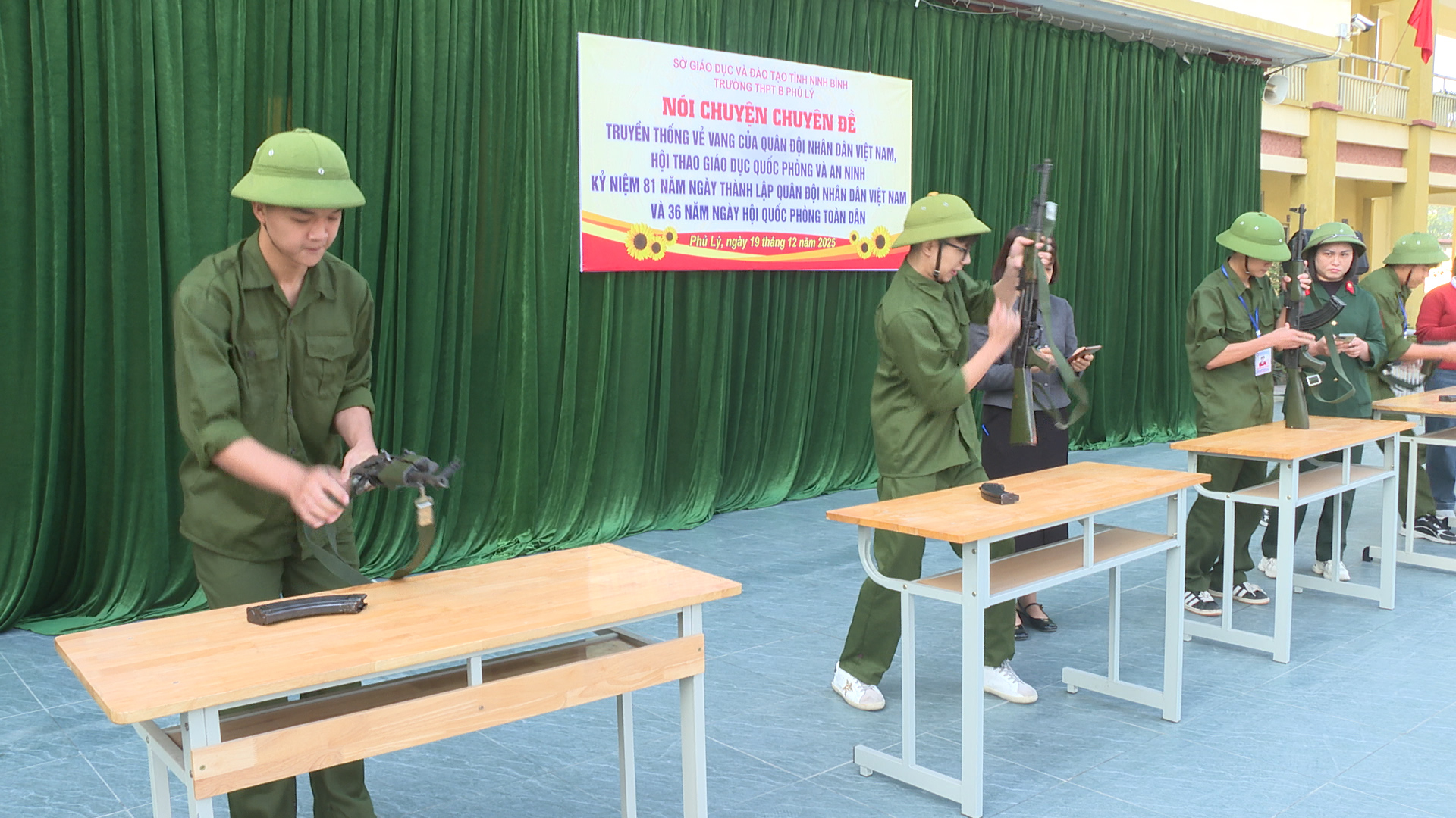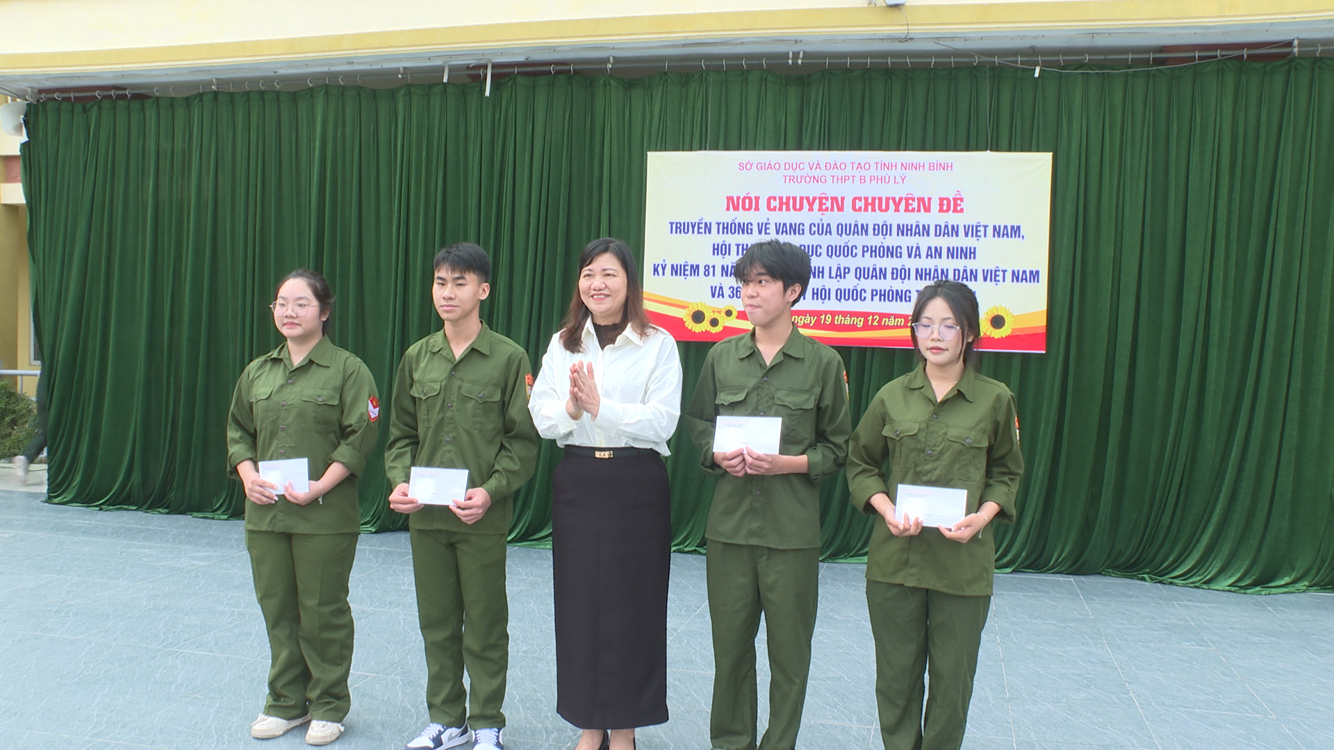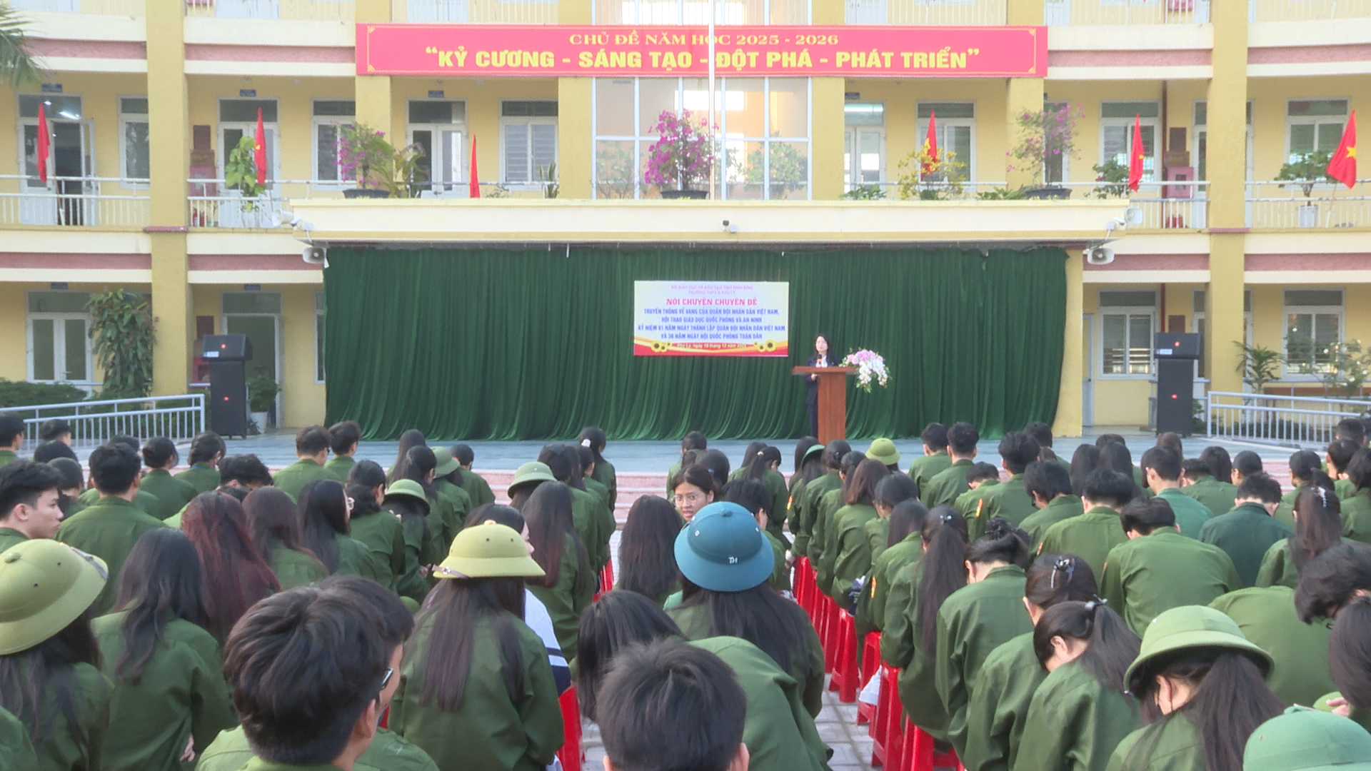 Trong không khí hào hùng, phấn khởi của những ngày tháng 12 lịch sử, tại buổi sinh hoạt, các thầy cô giáo, các em học sinh trường THPT B phủ Lý đã nghe đồng chí Nguyễn Thị Nguyệt – Trưởng phòng Khoa giáo, Văn hoá – Văn nghệ Ban Tuyên giáo và Dân vận Tỉnh ủy Ninh Bình truyền đạt, ôn lại những dấu mốc lịch sử vẻ vang của Quân đội nhân dân Việt Nam – đội quân cách mạng do Đảng và Chủ tịch Hồ Chí Minh sáng lập, rèn luyện và lãnh đạo. Những câu chuyện về chiến công, về tinh thần quả cảm và phẩm chất cao đẹp của “Bộ đội Cụ Hồ” đã giúp học sinh hiểu rõ hơn truyền thống anh hùng của quân đội ta trong suốt 81 năm xây dựng, chiến đấu và trưởng thành… Thông qua hoạt động tuyên truyền góp phần giáo dục lòng yêu nước, bồi dưỡng tinh thần tự lực tự cường cho học sinh – một nội dung quan trọng trong giáo dục toàn diện của nhà trường. Qua đó, giúp các em hình thành bản lĩnh, tri thức và trách nhiệm của thế hệ trẻ đối với Tổ quốc.
